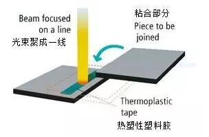 碳纖維復(fù)合材料的疊加粘接。在這里激光為焊接做準(zhǔn)備并執(zhí)行粘合加工。